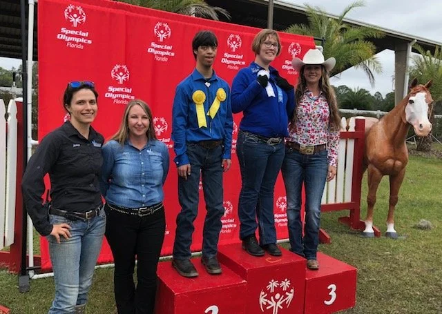 Competitive riding for individuals with disabilities is an advanced facet of therapeutic riding. Once students have participated in a riding session, they are encouraged to participate in horse shows, as well as the Equestrian Special Olympics. Both the County- and Area-level competitions are held at McCormick, followed by State competition in Weirsdale. We look forward to having you on the team!